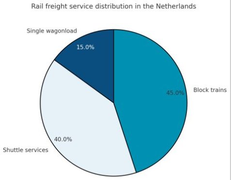 Z dostupných statistik vyplývá, že přeprava JVZ v Nizozemsku dosáhla v roce 2023 objem 6 mil. tun, což představuje podíl 15 % na celkové přepravě železničního carga v zemi. S celkovým objemem nákladní přepravy 39,3 mil. tun zaujímá železnice pouhá 2% přepravního trhu v zemi. Měřeno přepravním výkonem v tkm je podíl železnice na přepravním trhu 6 %.