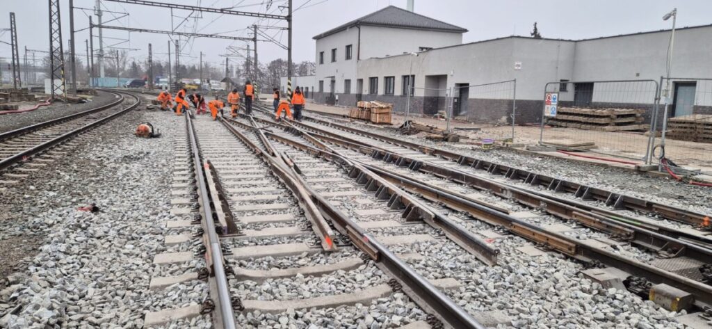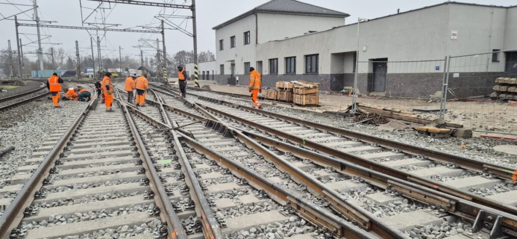 Současně byly objednány nové výhybky – 2x křižovatková C60 1:11/9 – 300, 60E2 -2 . generace, 1:11/9, 1x jednoduchá J60 1:9 – 300 60E2 – 2. generace a dvojitá kolejová spojka 1:11-300, 60E2 – 2. generace, všechny samozřejmě na betonových pražcích. Ve výlukách od 5. do 11. ledna 2026 probíhalo vkládání křižovatkové výhybky 171ab a dvojité kolejové spojky 913 zpět do kolejiště.