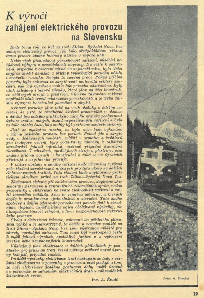 Minulý týden jsme zde zveřejnili příspěvek o nebývalém úspěchu současných indických železnic při elektrizaci své železniční sítě. Dnes se podíváme na podobné téma do domácí historie. V únoru 1957 uplynulo jednak devět let od tzv. Vítězného února, a pak též rok od zahájení elektrického provozu v celé trati Žilina – Spišská Nová Ves